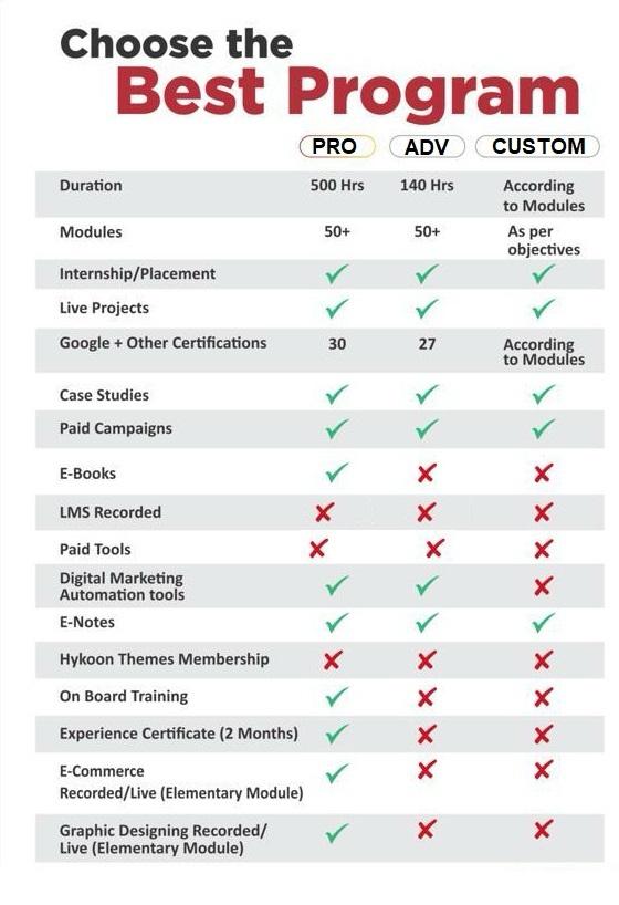 with Us Our faculty members are Certified Digital Marketing Industry Experts with global digital marketing training experience. Our courses are crafted by industry experts to keep our students ahead of the curve in industry best digital marketing practices. Our course modules ensure that students learn practical digital marketing AI applications along with the theoretical concepts. Furthermore, new advancements in digital marketing courses are continuously updated as per the latest and upcoming industry trends. A high degree of commitment and personal attention is given through small batch size and individual counseling. Hands-on digital marketing training sessions and assignments on real-life projects and case studies to ensure comprehensive digital marketing learning.